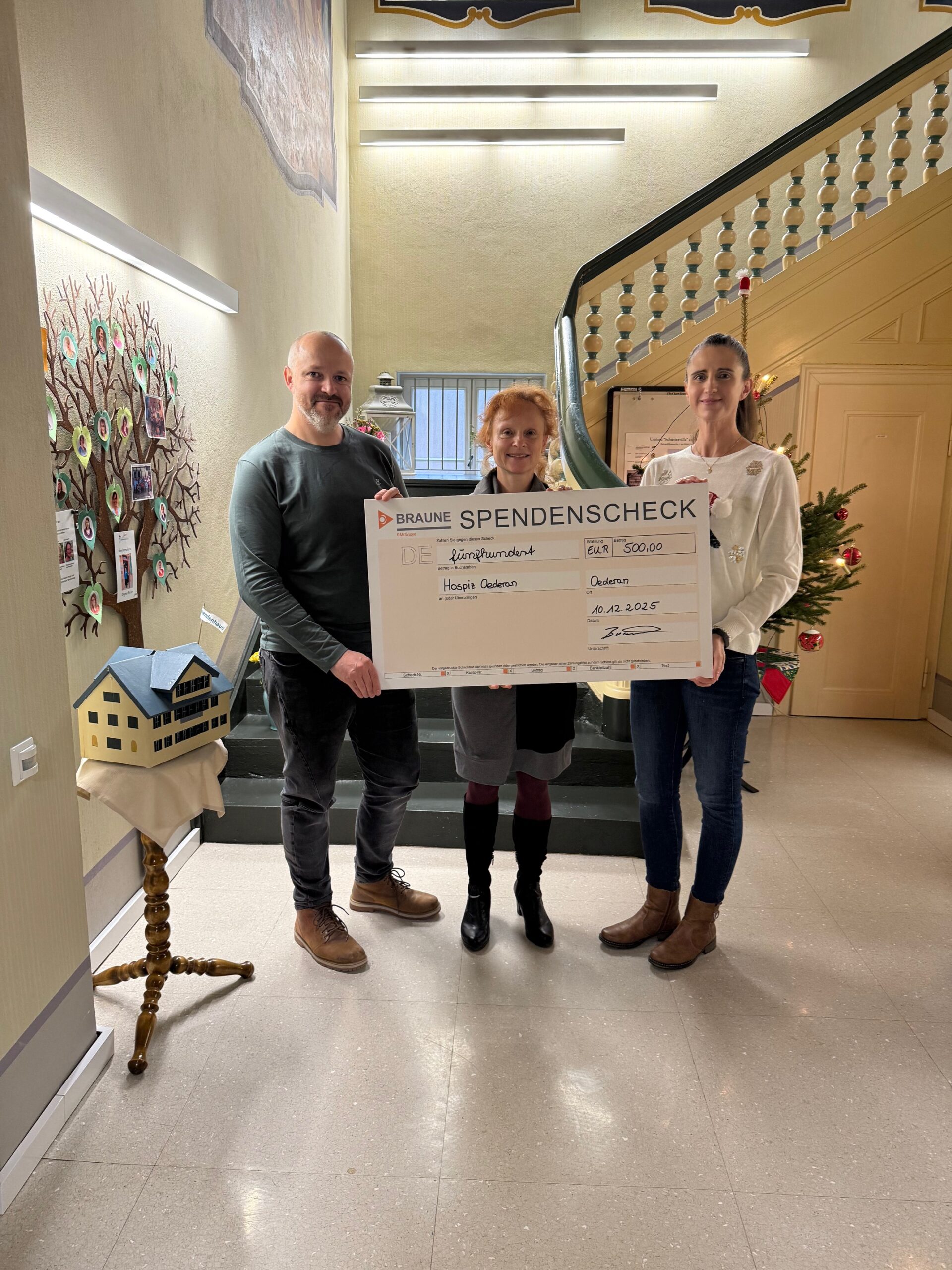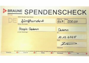 Statt der sonst üblichen Weihnachtsgeschenke hat sich das Unternehmen in diesem Jahr bewusst für eine Unterstützung unserer Arbeit entschieden. Diese Entscheidung hat auch einen persönlichen Hintergrund, da Herr Peter Braune unser Hospiz aus eigener Erfahrung kennt. Mit dieser Spende setzt die Braune GmbH ein Zeichen der Verbundenheit und Wertschätzung für die hospizliche Arbeit.